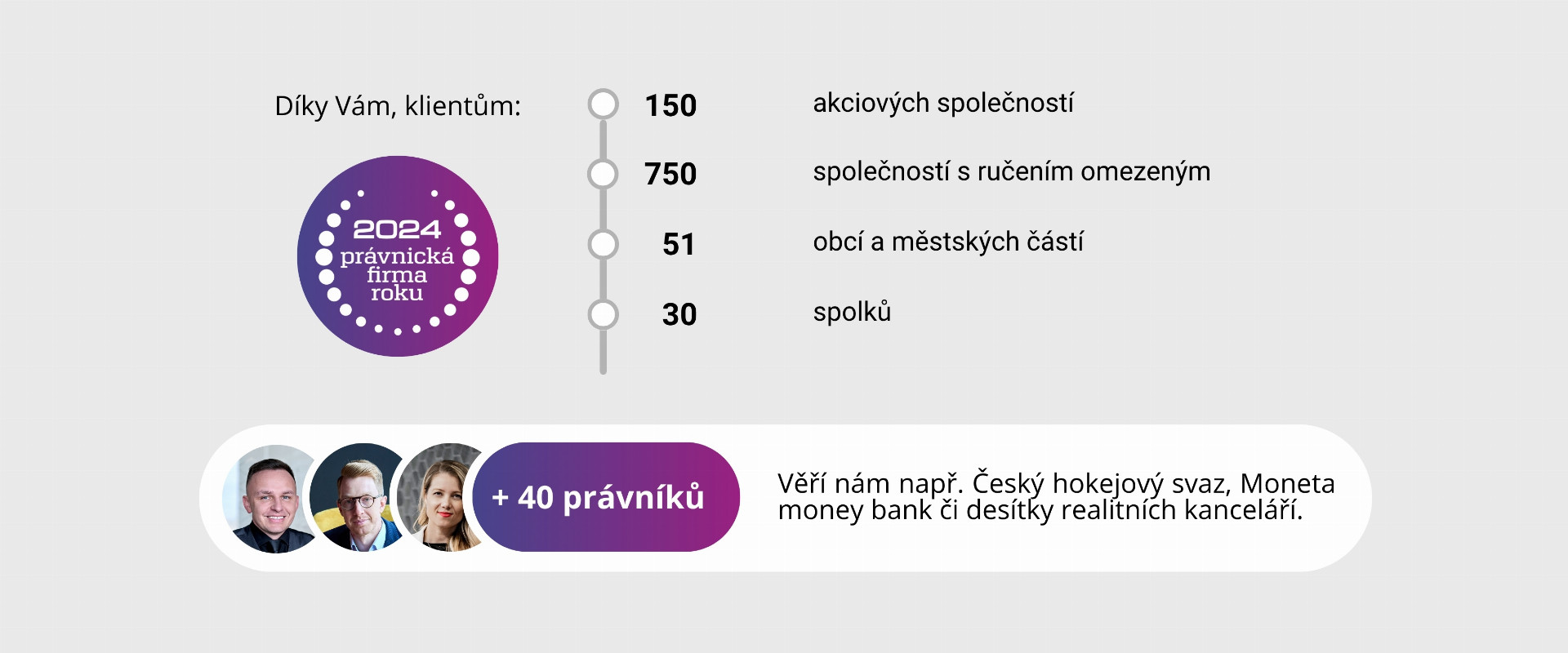 Nechcete tenhle problém řešit sami? Advokátní kanceláři ARROWS věří více než 2000 klientů a jsme oceněni jako Právnická firma roku 2024. Podívejte se ZDE na naše reference a bude nám ctí pomoci vám při řešení vašeho problému. Poptávka je zdarma.